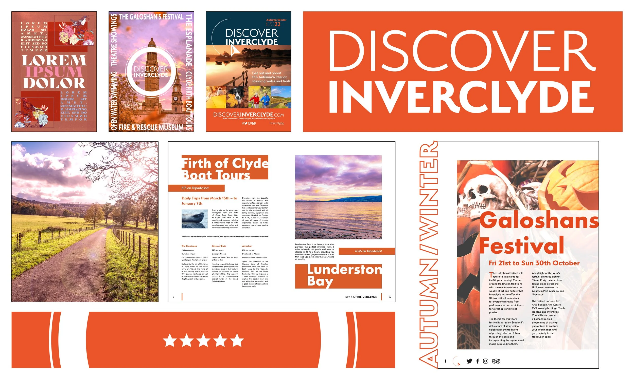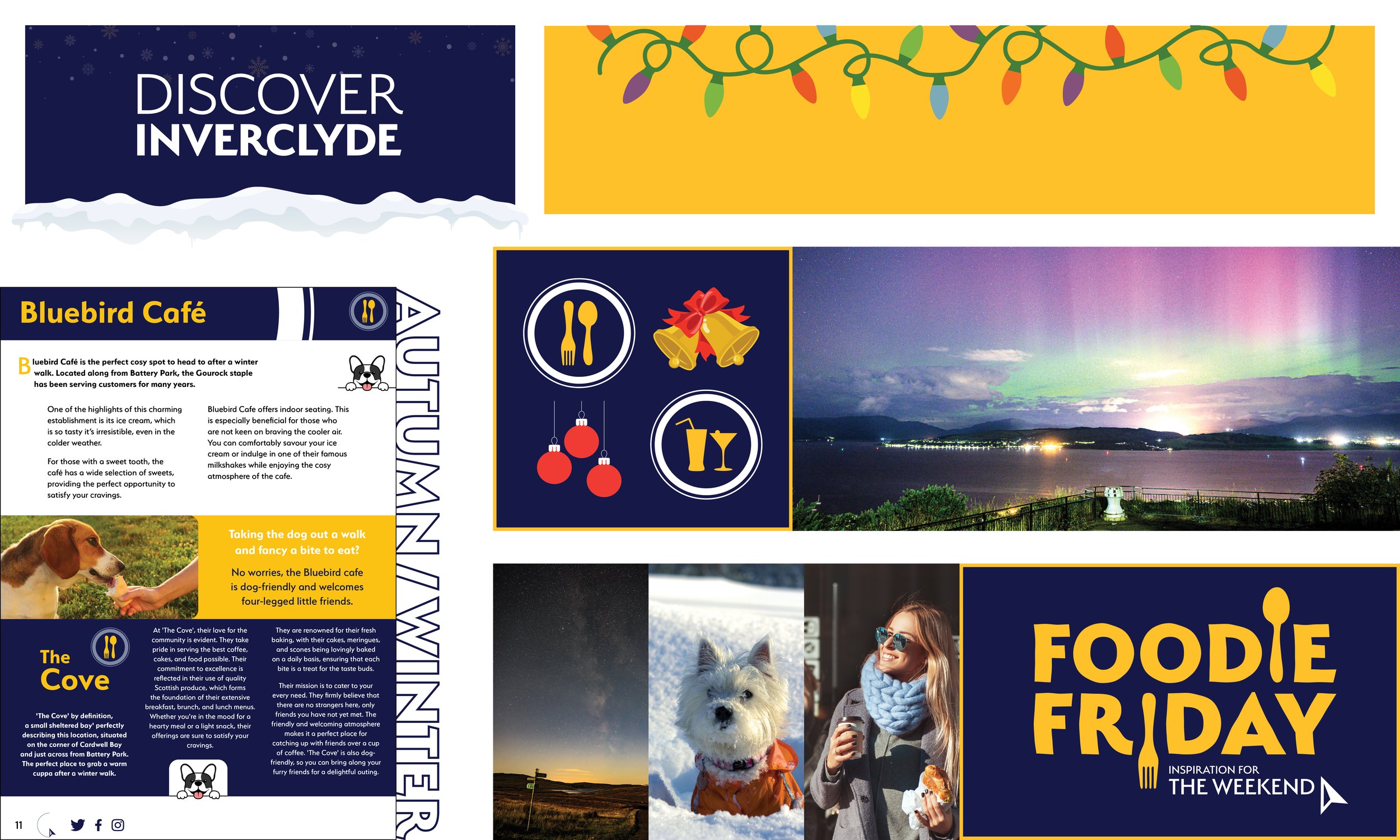 I designed a series of magazines for Discover Inverclyde, showcasing the region’s attractions, dining, activities, and scenic beauty. The aim was to create engaging, visually appealing editorial content that encourages readers to explore Inverclyde.